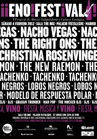 Madrid, 26 de enero de 2012,- Freixenet, Berberana, Arzuaga, Rosados de Navarra y Prado Rey serán las bodegas encargadas de sorprendernos con sus vinos al tiempo que disfrutamos de los conciertos de Nacho Vegas, Christina Rosenvinge, The Right Ons, The New Raemon, Tachenko, Lobos Negros y Modelo de Respuesta Polar.